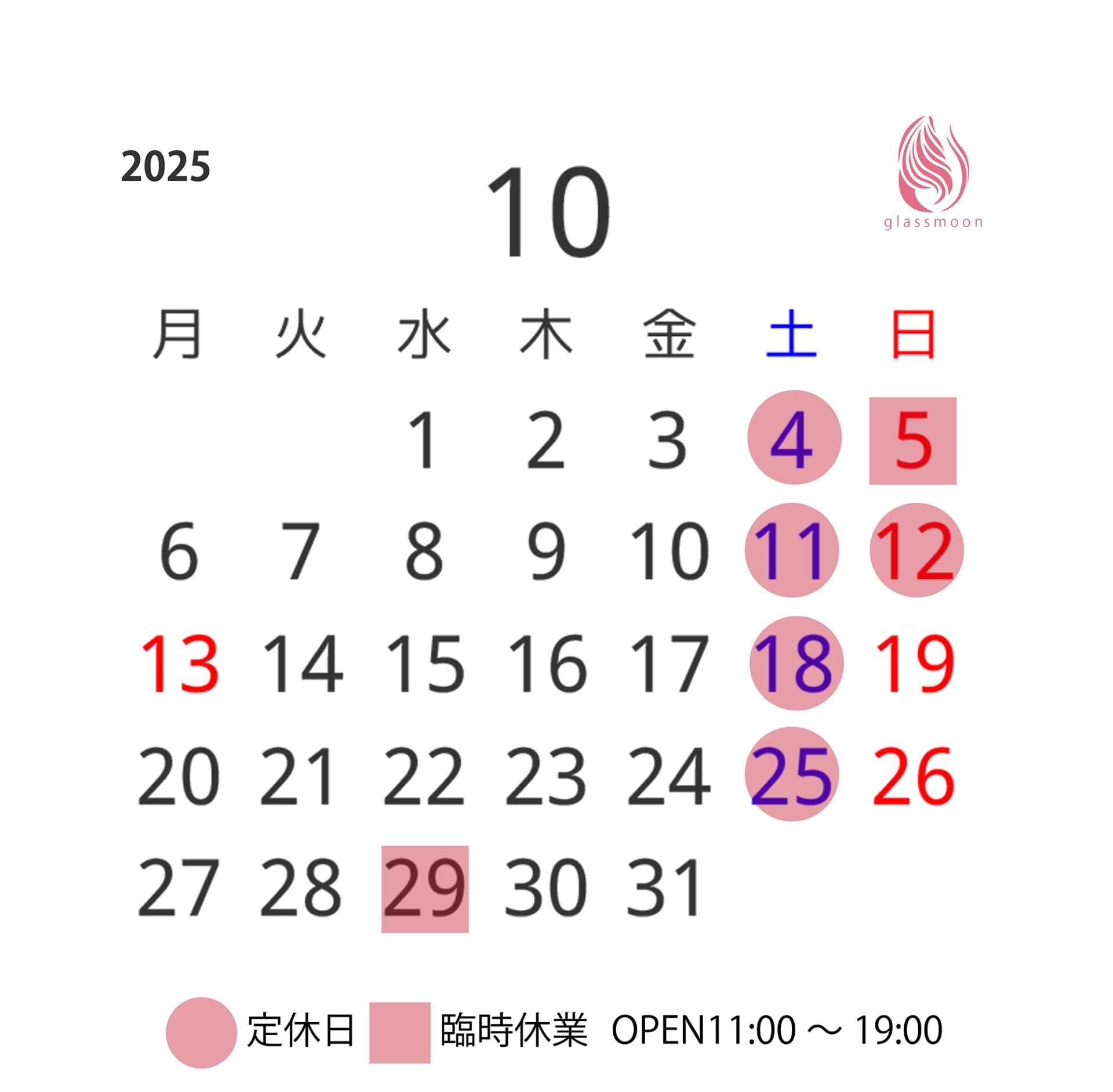 10月5日(日)、29日(水)は臨時休業とさせていただきます。
